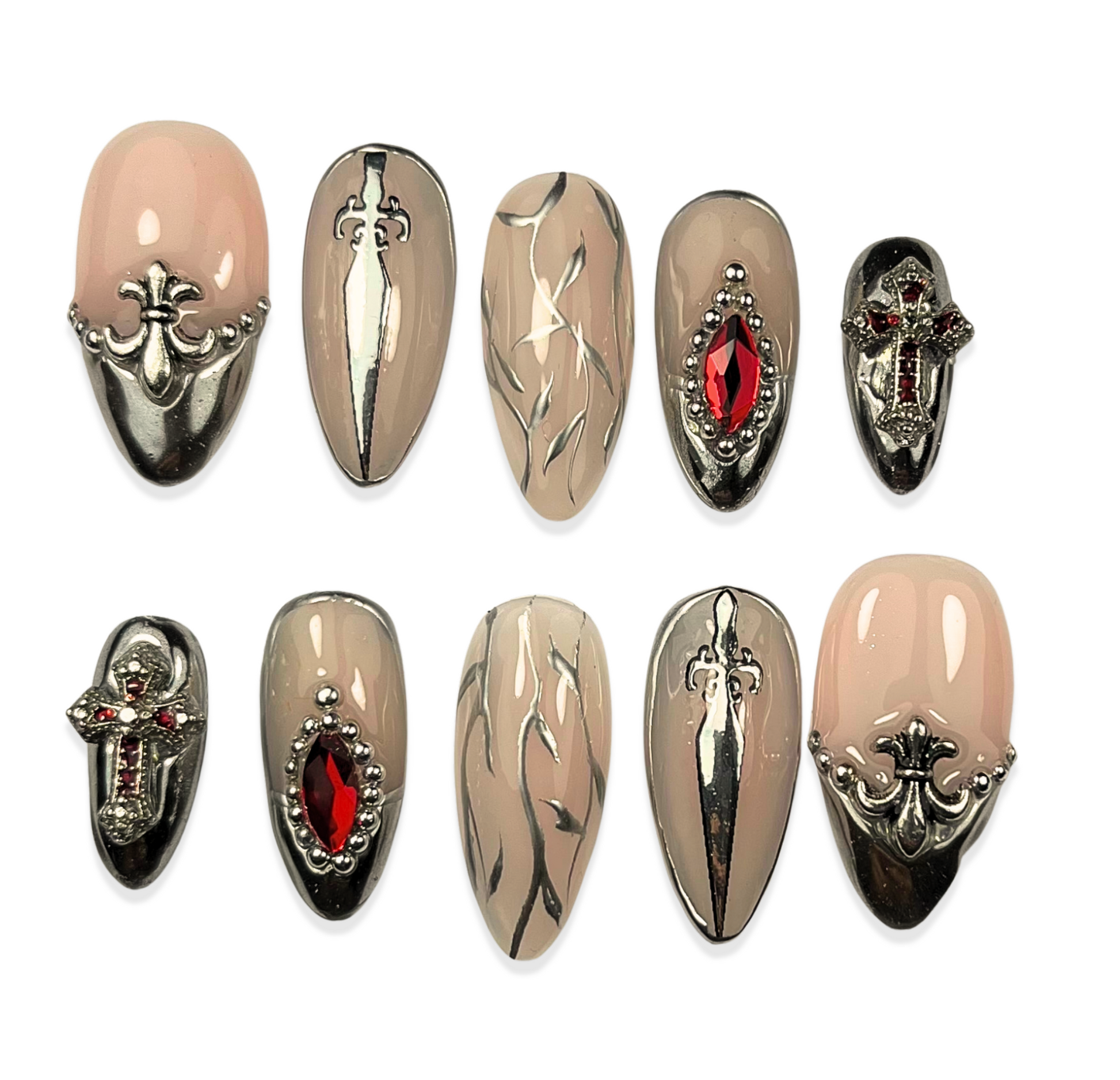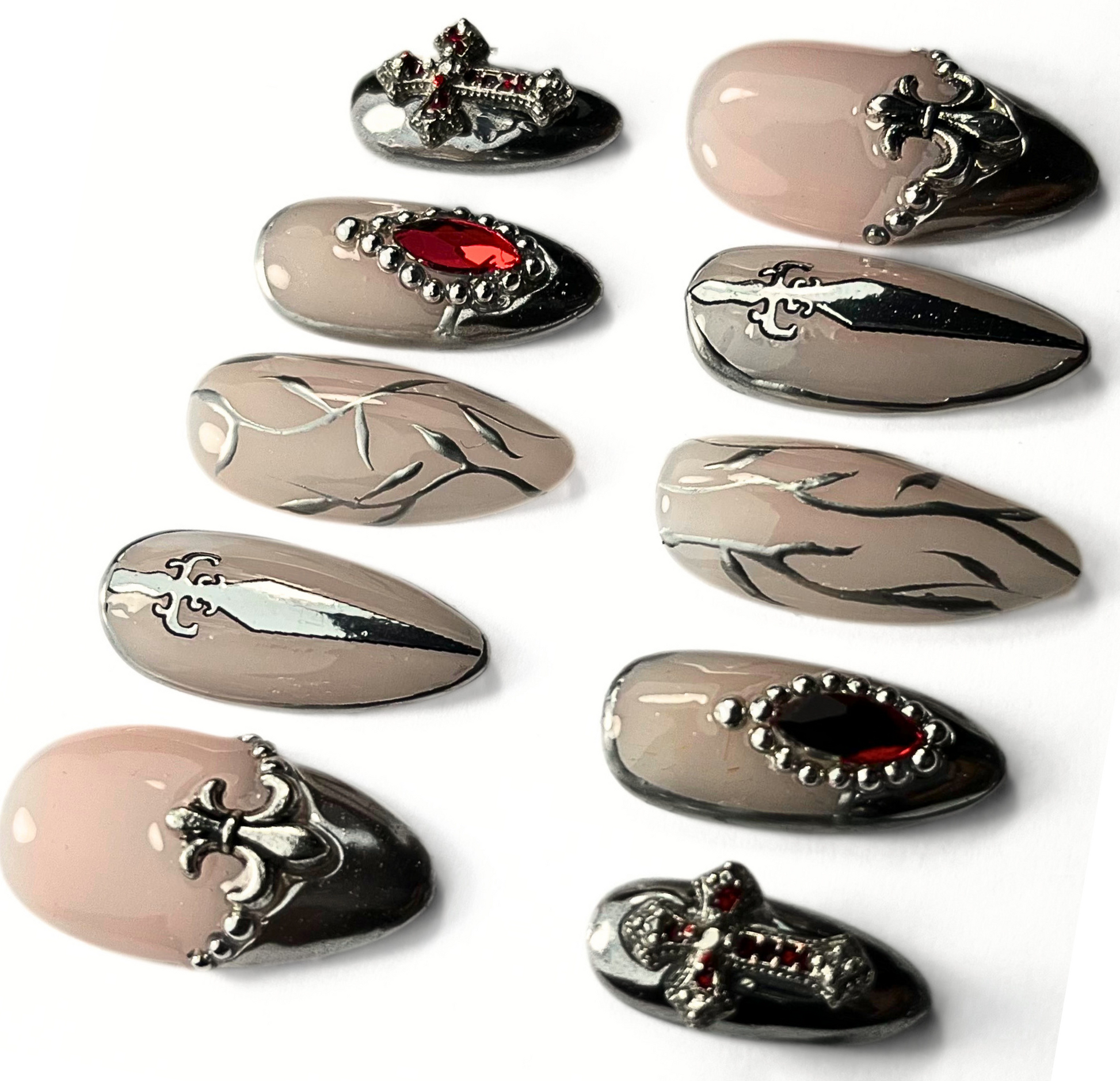 10 hand-painted press-on nails