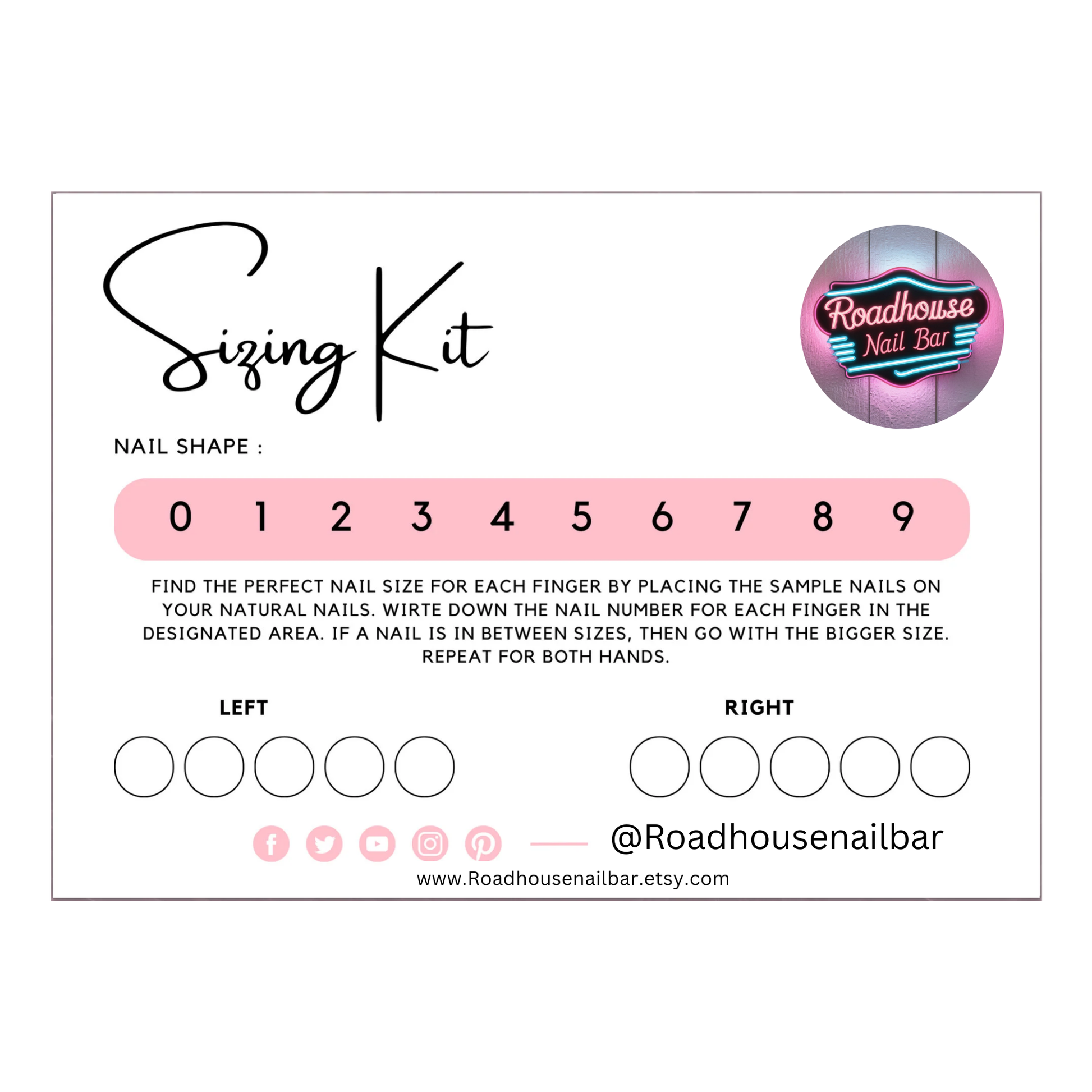 Not sure what size to order? Our Sizing Kit makes it easy to get the perfect fit for your press-on nails—no guessing needed! You’ll receive a full range of nail sizes (0–9) to test on your natural nails at home. Just pop them on, jot down your perfect fit (thumb to pinky), and you’re good to go for any future orders .