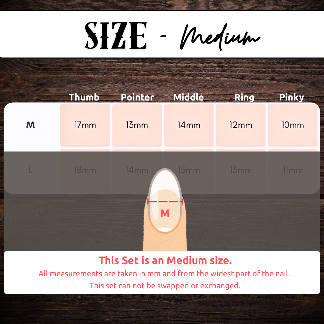 Grab the original one-off model set of this design — the exact set used in the product photos! Already made, ready to ship, and sold exactly as shown. This is a unique chance to snag a discounted, salon-quality press-on set if it matches your size.